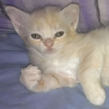 She had her only litter to Helen Marriott-Power's Quin (I GR CH Mainman Quintessence), a Burmese boy who's pedigree hadn't appeared in Asians before, making him an excellent outcross. She had five cream Burmillas: two boys and three girls, and we kept one of the girls, Lura. When people were coming to meet her kittens, one of the ladies fell in love with Small herself, instead of the kittens, and the feeling seemed to be mutual, so we had Small spayed and let her go to live with them instead of keeping her ourselves.