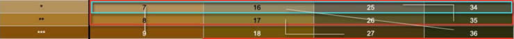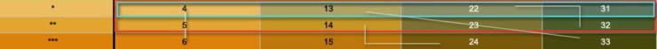 (titled '*') contains the colours with level 1 blue tintThe fourth column